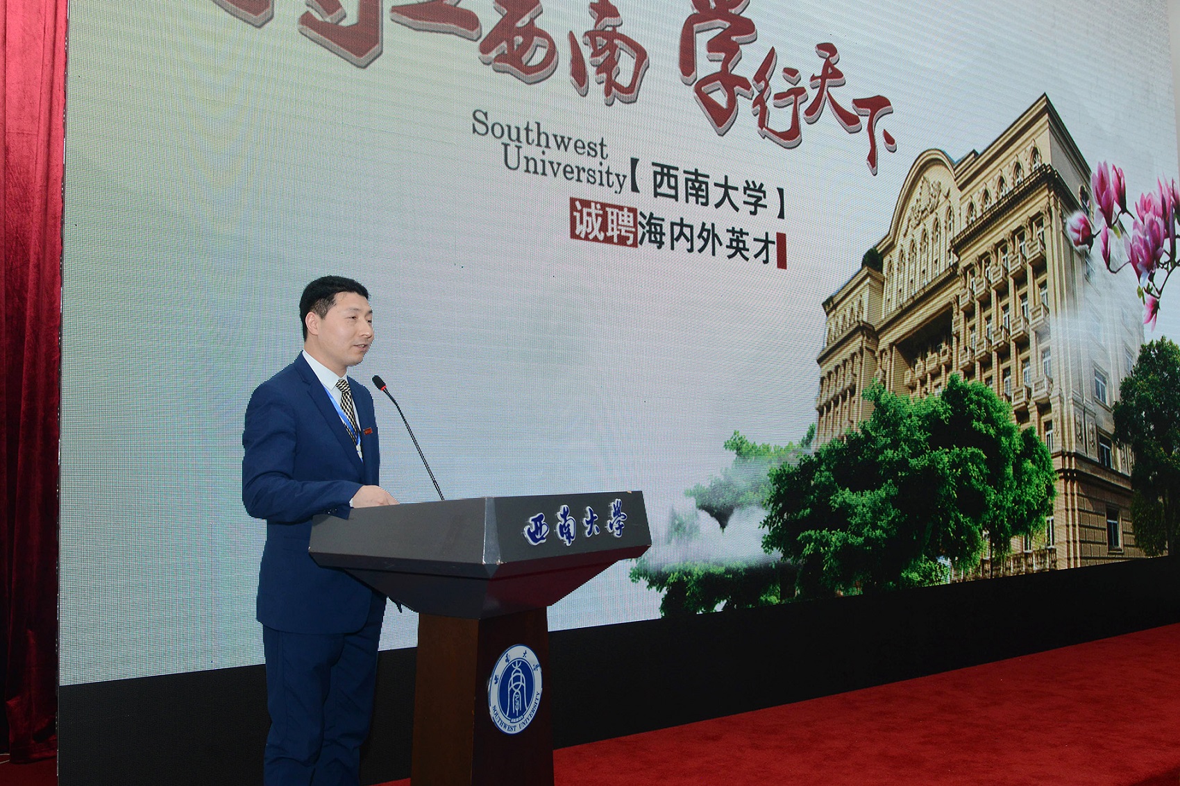 人事处处长杨毅介绍了学校在科学研究、科研平台建设、人才培养、国际化等方面取得的成绩,讲解了 “聚贤工程”“英才工程”及相关人事制度,以及学校在科学研究、自然人文环境、子女教育方面的独有优势,邀请青年学者加入西大。