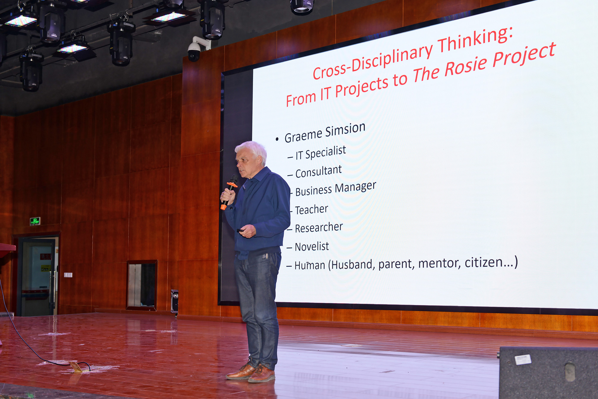 当晚,格雷姆•辛浦生先生从沟通、设计、应对批评、同理心和反思等五个方面作了题为“跨学科思考:从IT项目到《罗西计划》”的讲座,并与学生现场互动交流,获得到了同学们的热烈掌声和一致好评。