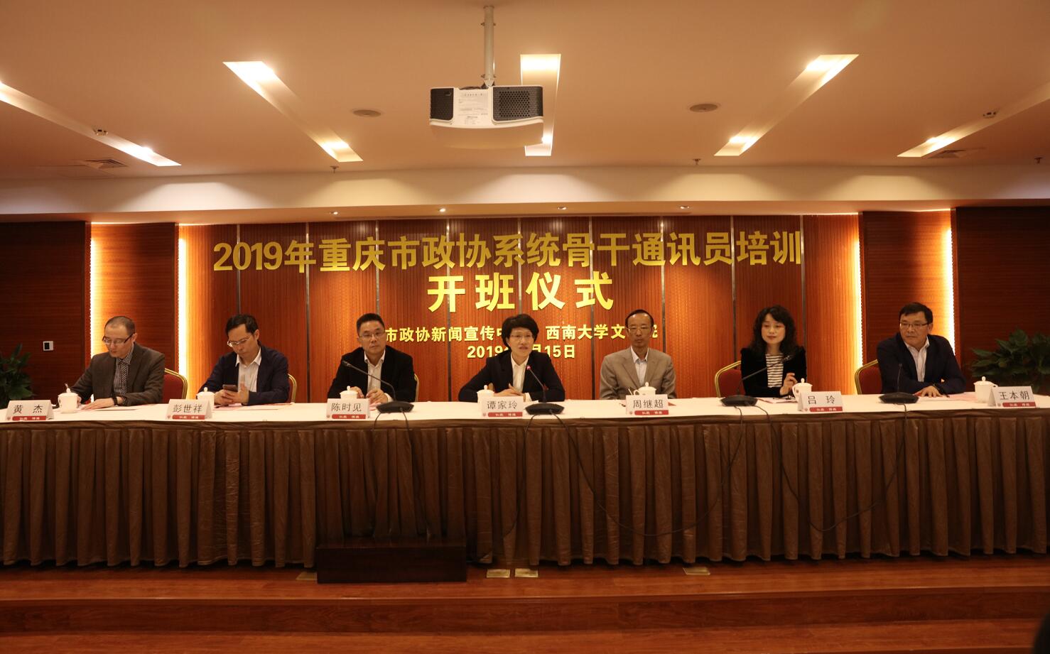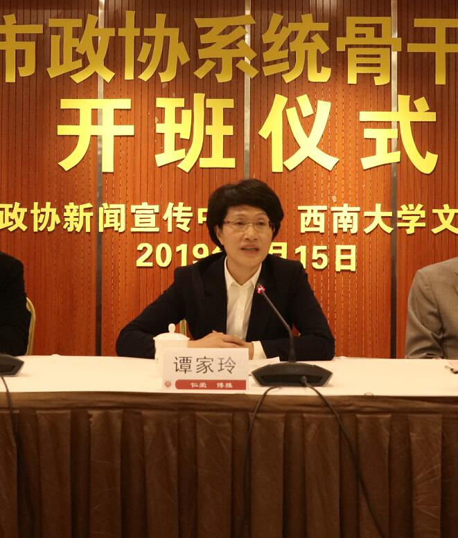 4月15日,2019年重庆市政协系统骨干通讯员培训在学校开班,重庆市政协副主席谭家玲,金年会jinnianhuicom副校长陈时见,北碚区政协主席周继超,重庆市政协研究室副主任吕玲,金年会jinnianhuicom文学院党委书记黄杰、院长王本朝,重庆市政协新闻宣传中心副主任彭世祥出席开班仪式。开班仪式由吕玲副主任主持,来自重庆市政协新闻宣传中心及各区县政协新闻部门负责人130余人参加开班仪式。