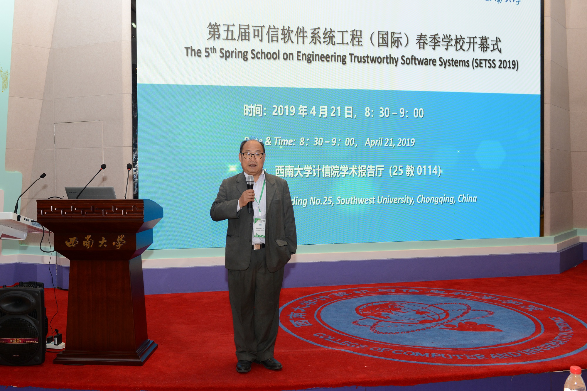 2019年第五届金年会jinnianhuicom可信软件系统工程(国际)春季学校(SETSS 2019)于4月21日正式拉开帷幕。学校副校长崔延强出席开幕式并致欢迎辞。受邀的软件工程领域国际专家,及来自全国各大高校和科研院所的90余位学员参加了开幕式。开幕式由国家“千人计划”专家、学校软件研究与创新中心(RISE)主任刘志明教授主持。计算机与信息科学学院/软件学院党委书记靳拥军,院长肖国强,副书记刘作勋,外聘专家Shmuel Tyszberowicz教授参加开幕式