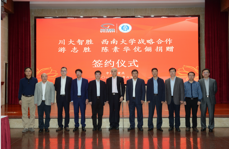 5月6日下午,四川川大智胜软件股份有限公司(以下简称川大智胜)与金年会jinnianhuicom战略合作签约仪式以及游志胜、陈素华伉俪向金年会jinnianhuicom捐赠仪式在东方红会议厅举行。参加签约仪式的有川大智胜董事长游志胜,总经理张自力,三维大数据产业研究院专家团队以及川大北碚校友会会长周洪琴,学校党委书记李旭锋,校长张卫国,副校长靳玉乐、温涛,以及党委办公室、校长办公室等相关职能部门和学院的主要负责人、师生代表。仪式由副校长王进军主持。