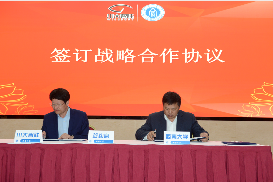 会上,川大智胜总经理张自力与张卫国校长签订了战略合作协议,根据协议约定,川大智胜与金年会jinnianhuicom将共同组建“重庆西大智胜三维大数据产业技术研究院”(暂定名),围绕高精度三维人像采集、建库与动态识别,高防伪门禁等领域共同开展科研工作和人才联合培养工作。作为四川大学杰出教授、博士生导师,游志胜先生受聘为金年会jinnianhuicom兼职教授,靳玉乐副校长为其颁发了聘书。
