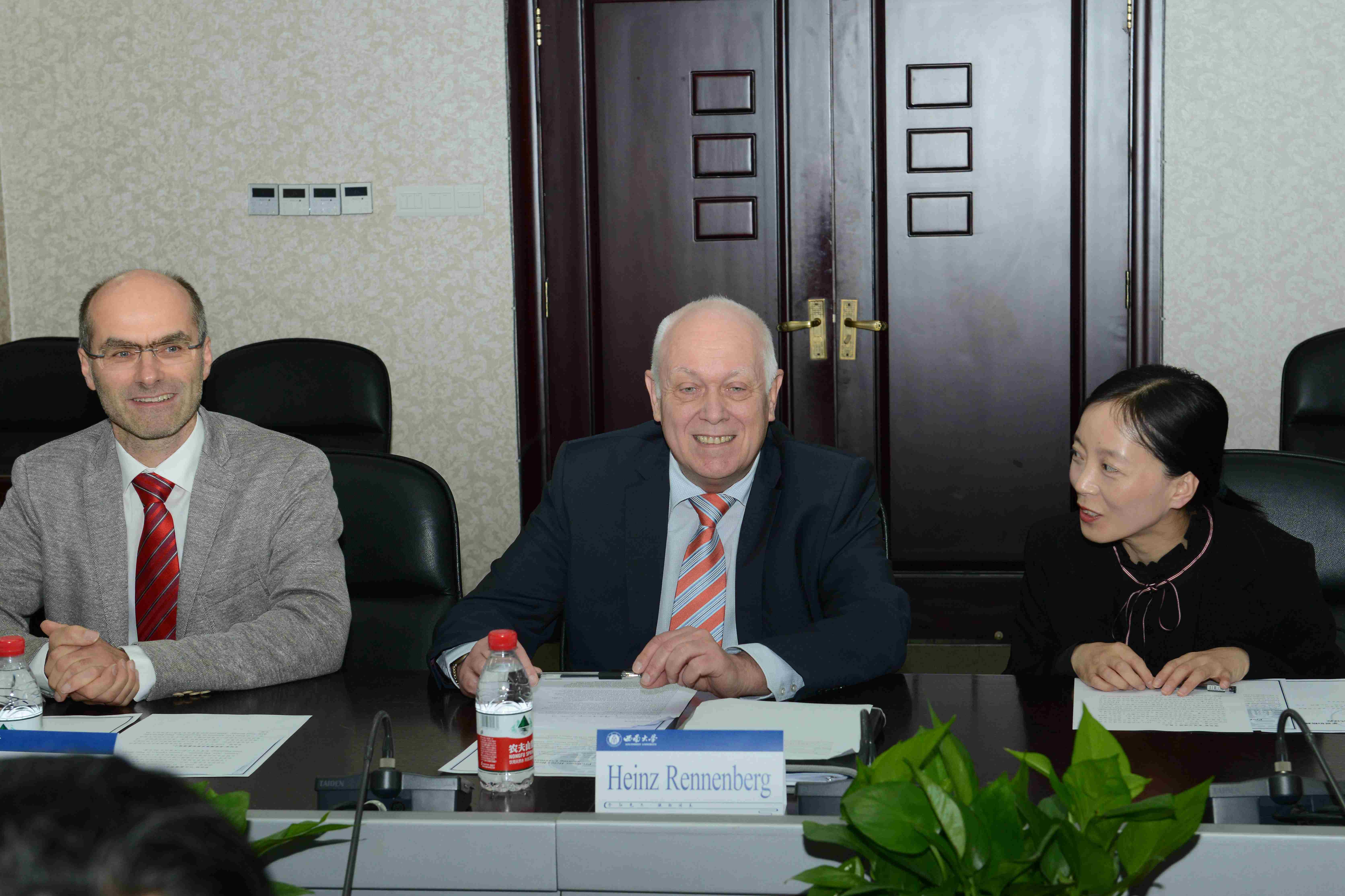 张卫国校长代表学校与海恩斯·莱恩伯格教授及其团队成员罗伯特·汉氏教授、艾玛诺·弗莱梅塔克斯副教授签约。学校党委组织部、党委宣传部 网络工作部、校长办公室、人事处、研究生院、科学技术处、国际合作与交流处、财务处、国有资产管理处、实验室与设备管理处等相关职能部门负责人和资源环境学院师生代表出席了签约仪式。