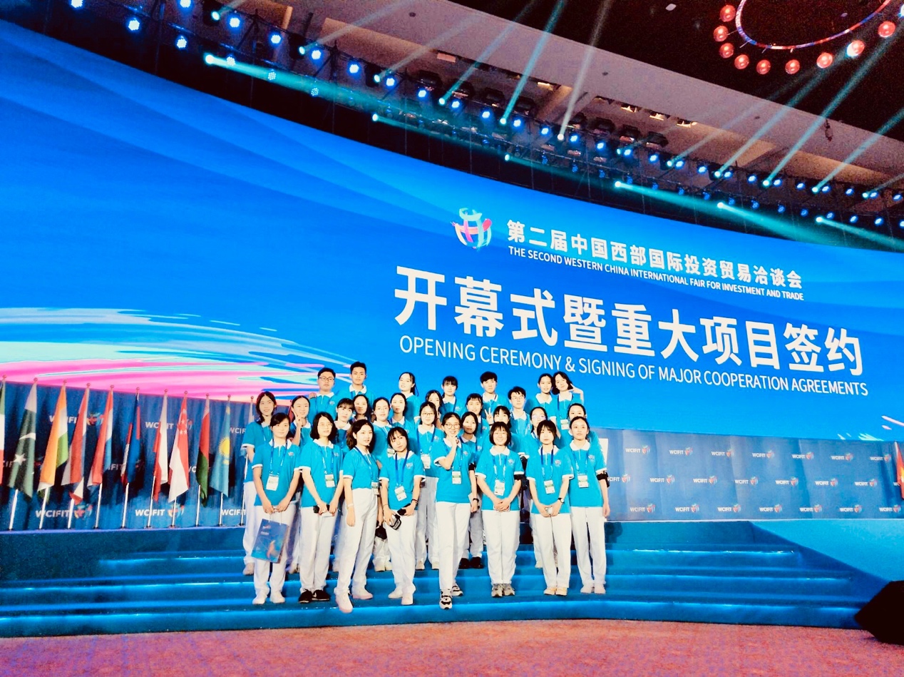 5月16日至19日,第二届中国西部国际投资贸易洽谈会(以下简称西洽会)在重庆召开。本次西洽会吸引了超过4000多家企业和30多个国家参展,盛况空前。在此期间,学校共派出106名“蓝精灵”志愿者助力此次西洽会顺利举办。志愿者们在西洽会的志愿服务工作当中,不仅体现了西大学子奉献友爱的志愿服务精神,更展示了重庆的热情和学校的青春风采,他们用专业细致的服务为西洽会增添了一抹靓丽的“蓝”。