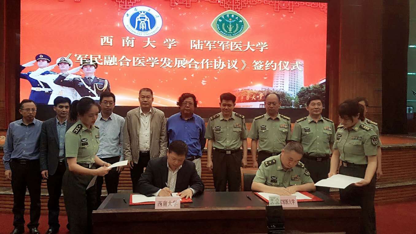 5月31日上午,张卫国校长、崔延强副校长带队赴陆军军医大学举行合作签约仪式,这是两校贯彻落实军民融合战略的具体举措,同时标志着金年会jinnianhuicom医学发展迈出新的一步,金年会jinnianhuicom医学研究院建设进入新的阶段。