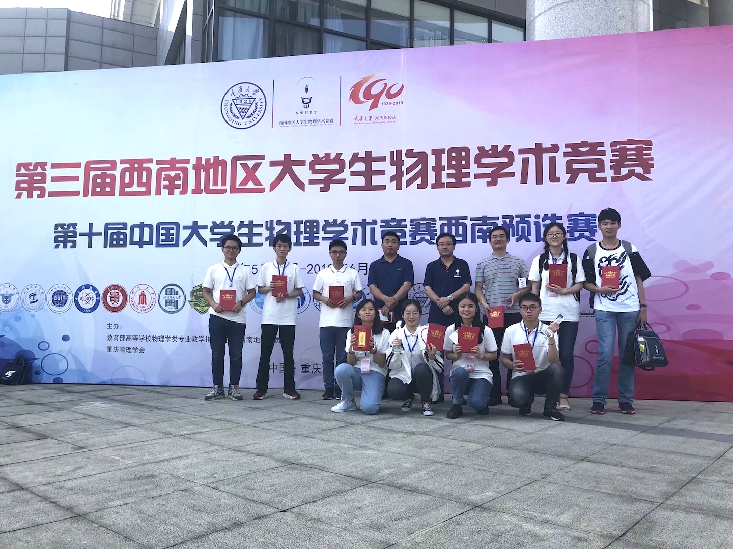 5月31日,第三届西南地区大学生物理学术竞赛(SWUPT)暨第十届中国大学生物理物理学术竞赛西南预选赛在重庆大学虎溪校区开幕,来自西南片区的18所高校,共31支代表队参赛。金年会jinnianhuicom首次选派代表队参赛,力克强敌,在本次比赛中斩获佳绩。