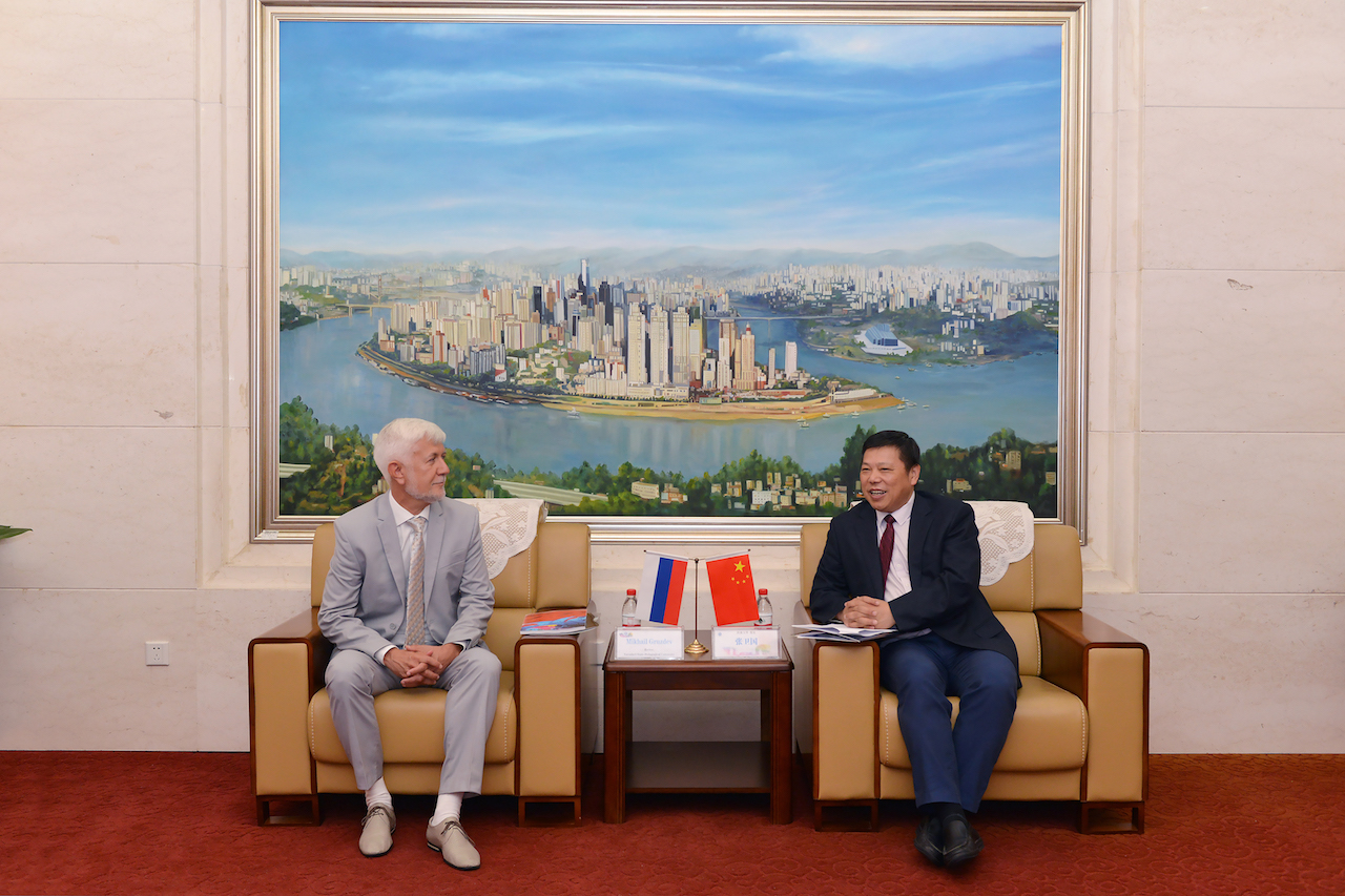6月14日,俄罗斯雅罗斯拉夫尔国立师范大学米哈伊尔·格鲁兹杰夫校长、亚历山大·霍德列夫副校长一行来校访问,张卫国校长会见客人。