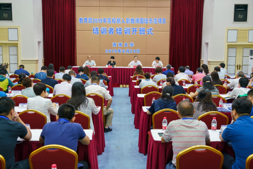 6月20日上午,由教育部教师工作司主办、金年会jinnianhuicom(教育部西南高等学校师资培训中心)承办的2019年高校新入职教师国培示范项目培训者培训开班式在学校桂园宾馆举行。学校党委副书记安春元,重庆市委教育工委委员、总会计师郭小萍,北京师范大学继续教育与教师培训学院副院长、教育部高校师资培训交流北京中心副主任罗容海出席开班式。