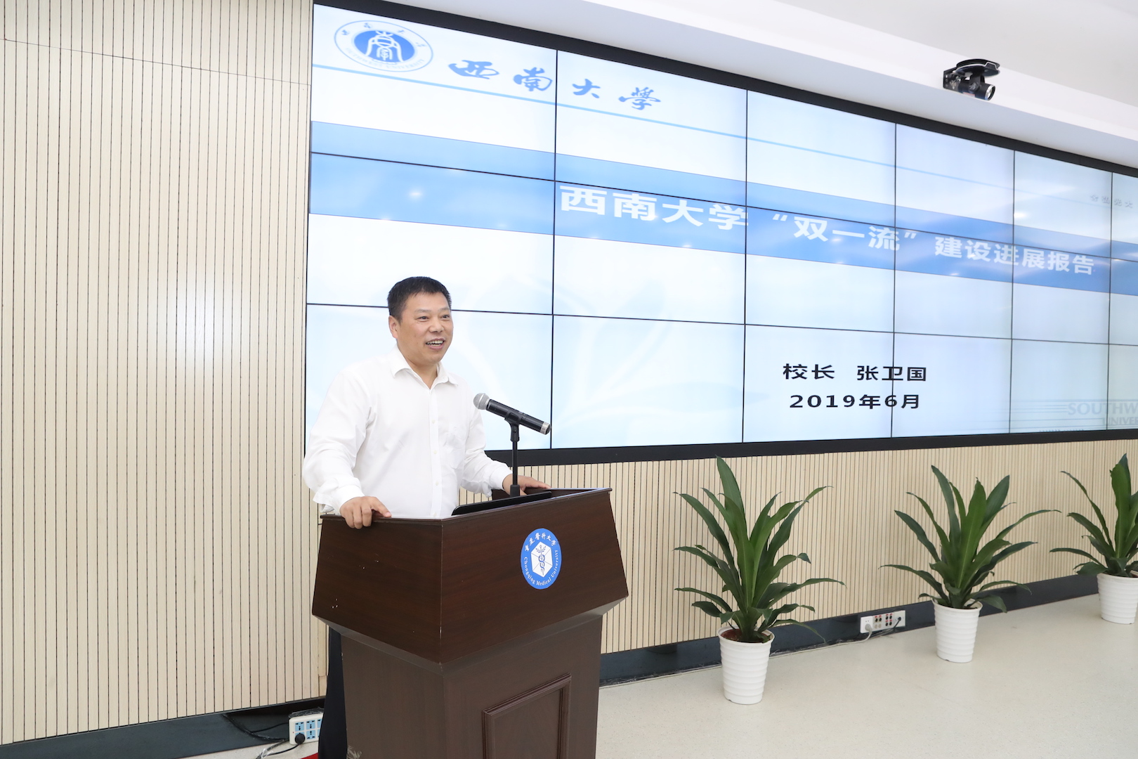 会议第二个阶段由重庆医科大学校长黄爱龙主持,各盟校校领导围绕“双一流”建设主题,结合学校自身做法进行分享交流,张卫国校长就学校学科建设情况、下一步发展思路以及未来联盟如何实现优势互补、资源共享,提出建设性的建议与方案。