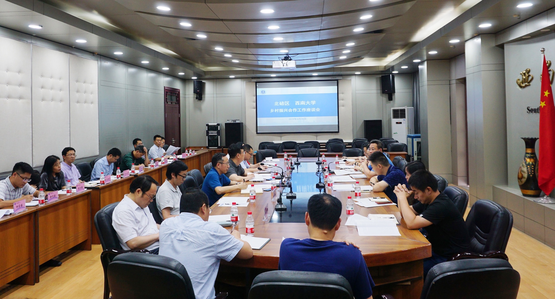 6月24日,学校举行与北碚区乡村振兴合作工作座谈会。北碚区副区长赵祺,学校副校长王进军出席会议,区校双方相关部门,乡镇、学院负责人参加会议。王进军副校长主持会议。