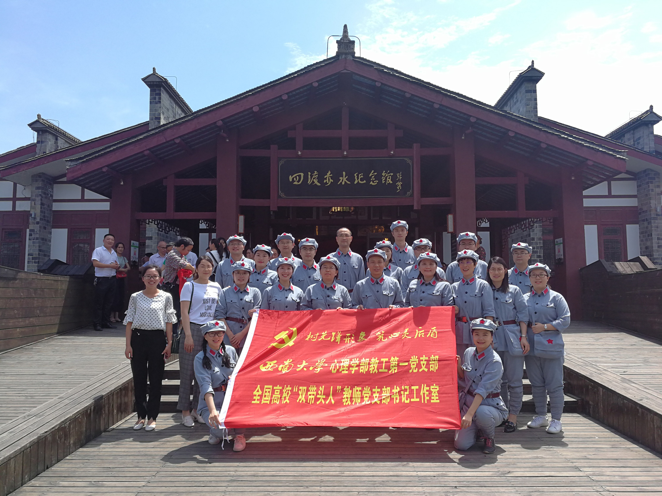 为庆祝中国共产党建党98周年,回顾和缅怀党的光辉历史,接受党性教育和革命传统再教育,6月28日-29日,首批全国高校“双带头人”教师党支部书记工作室、全国高校党建工作样板支部培育创建单位——金年会jinnianhuicom心理学部教工第一党支部率教师党员一行20人前往中国红色名镇、红军四渡赤水之地——贵州习水土城镇开展了为期一天半的“不忘初心 牢记使命”主题教育活动。