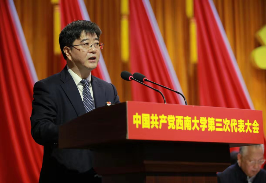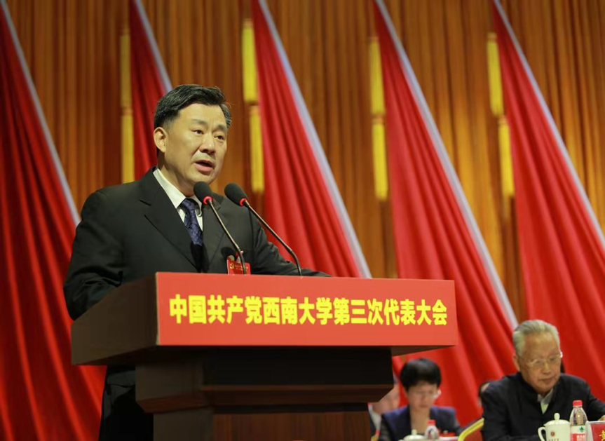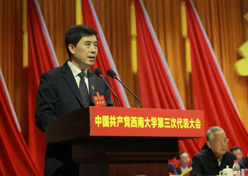 舒立春同志在讲话中指出,这次大会是学校政治生活的大事,是一次承上启下的会议。舒立春同志对金年会jinnianhuicom自第二次党代会以来党的建设和思想政治工作及学校各项事业取得的显著成绩给予充分肯定,认为金年会jinnianhuicom为重庆地方经济和教育事业发展作出了积极贡献。对即将产生的金年会jinnianhuicom新一届党委提出了三点希望:一是坚定政治方向,切实加强党的全面领导;二是坚守育人初心,不断提升人才培养质量;三是坚持内涵发展,加快推进“双一流”建设。
