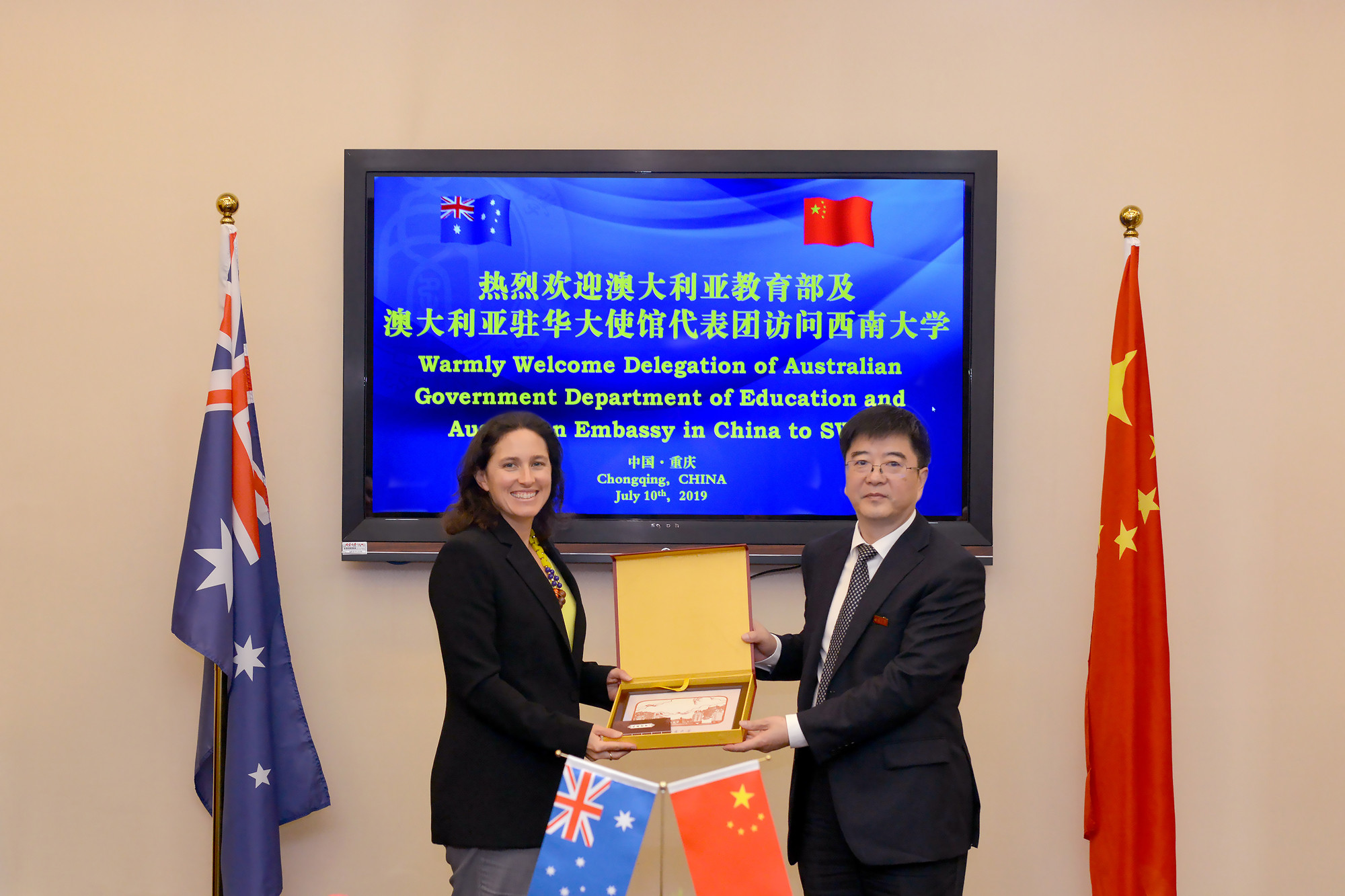 7月10日,澳大利亚教育部国际司副司长格雷塔·多琪女士、职教培训改革司副司长卡特莱娜·罗勒女士,澳大利亚驻华大使馆教育与研究公使衔参赞贺蓉歌女士、一等秘书罗杰德先生、教育处高级主管雷小锋女士,澳大利亚驻成都总领馆重庆事务官黄翎啁女士一行6人来校访问。党委书记李旭锋会见来访客人。