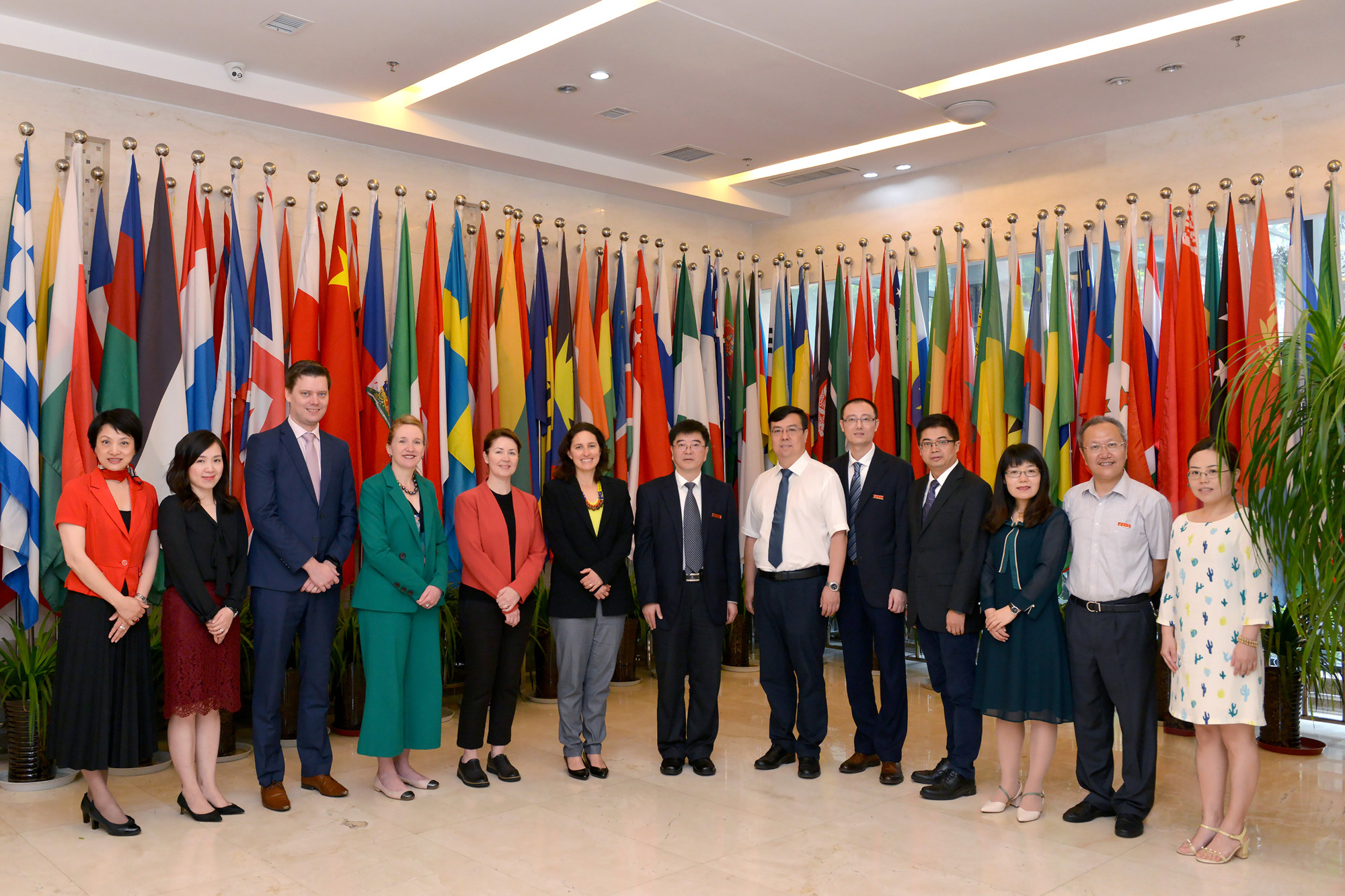 格雷塔﹒多琪副司长感谢学校对代表团的热情接待,高度评价了金年会jinnianhuicom与澳大利亚大学之间开展的卓有成效合作,并介绍了澳大利亚教育部与中国教育部讨论、推动签署两国教育战略合作谅解备忘录有关情况,指出澳大利亚政府高度重视对华教育交流与合作,致力于与中国开展互惠双赢的全面合作。格雷塔副司长表示,将会与澳大利亚高校认真研究李书记的重要意见。卡特莱娜﹒罗勒副司长和贺蓉歌公使衔参赞分别表态,乐见金年会jinnianhuicom与澳大利亚大学间的良好合作,进一步支持金年会jinnianhuicom与澳大利亚教育交流与合作向纵深发展。