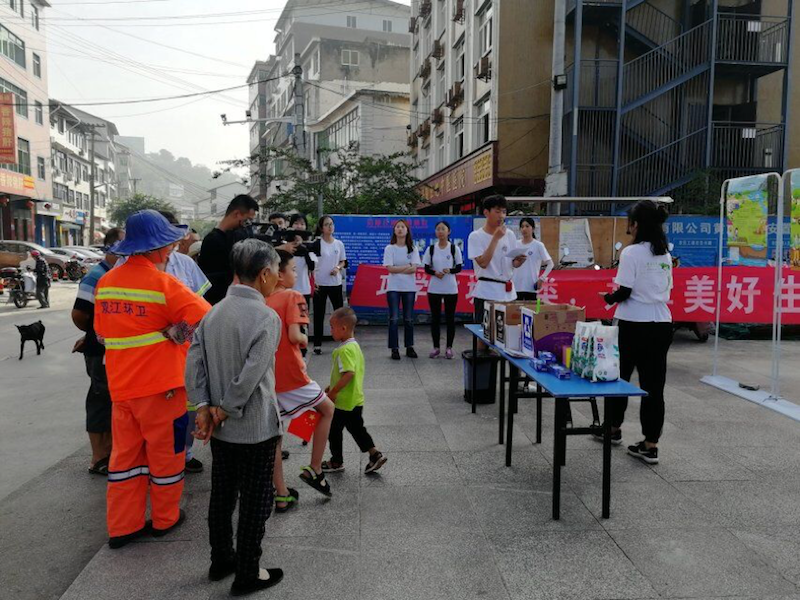 资源环境学院实践团成员们来到涪陵区江北街道黄旗社区,将需要展示的垃圾和经过回收利用后精心制作的垃圾桶摆放好,用生动活泼、群众喜闻乐见的形式让垃圾分类不再复杂,让过程更加有趣,让成效更加显著,将垃圾分类变成新时尚。