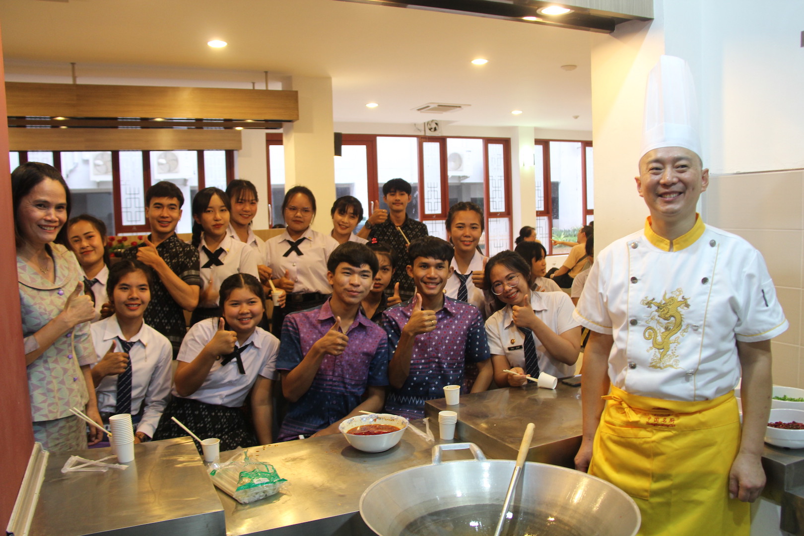 8月30日,“中国厨房”美食文化节暨金年会jinnianhuicom泰北校友会揭牌仪式在泰国孔敬大学隆重开幕,桂园宾馆厨师团队受邀在美食文化节上一展厨艺,乐山钵钵鸡、糖醋排骨香气四溢,循香而来的嘉宾和师生在摊位前排起了长龙,品尝之后都赞不绝口。
