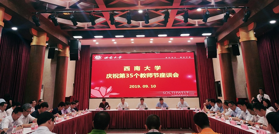 9月10日下午,学校在东方红会议厅举行庆祝第35个教师节座谈会。学校领导,相关职能部门负责人,国家级人才代表,获得省部级及以上荣誉称号的教师代表,校级模范教师、模范教育工作者和先进集体、从事教育工作者30年教职工代表,学校劳模名师宣讲团代表、正高职称教师、留学回国教师、新进教师代表参加座谈会。座谈会由校长张卫国主持。
