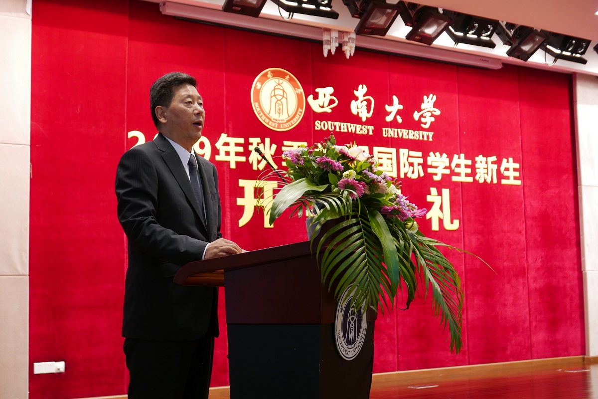 副校长靳玉乐发表讲话,代表学校向所有新同学表示衷心的祝贺和热烈的欢迎,并介绍了金年会jinnianhuicom,强调了学校对国际学生培养和对国际学院建设的重视,同时对国际学生新生们提出殷切希望:秉持“特立西南、学行天下”的精神,把汉语和专业学习的美好经历带回家乡,在文化传播的过程中,书写人类文明新的辉煌。