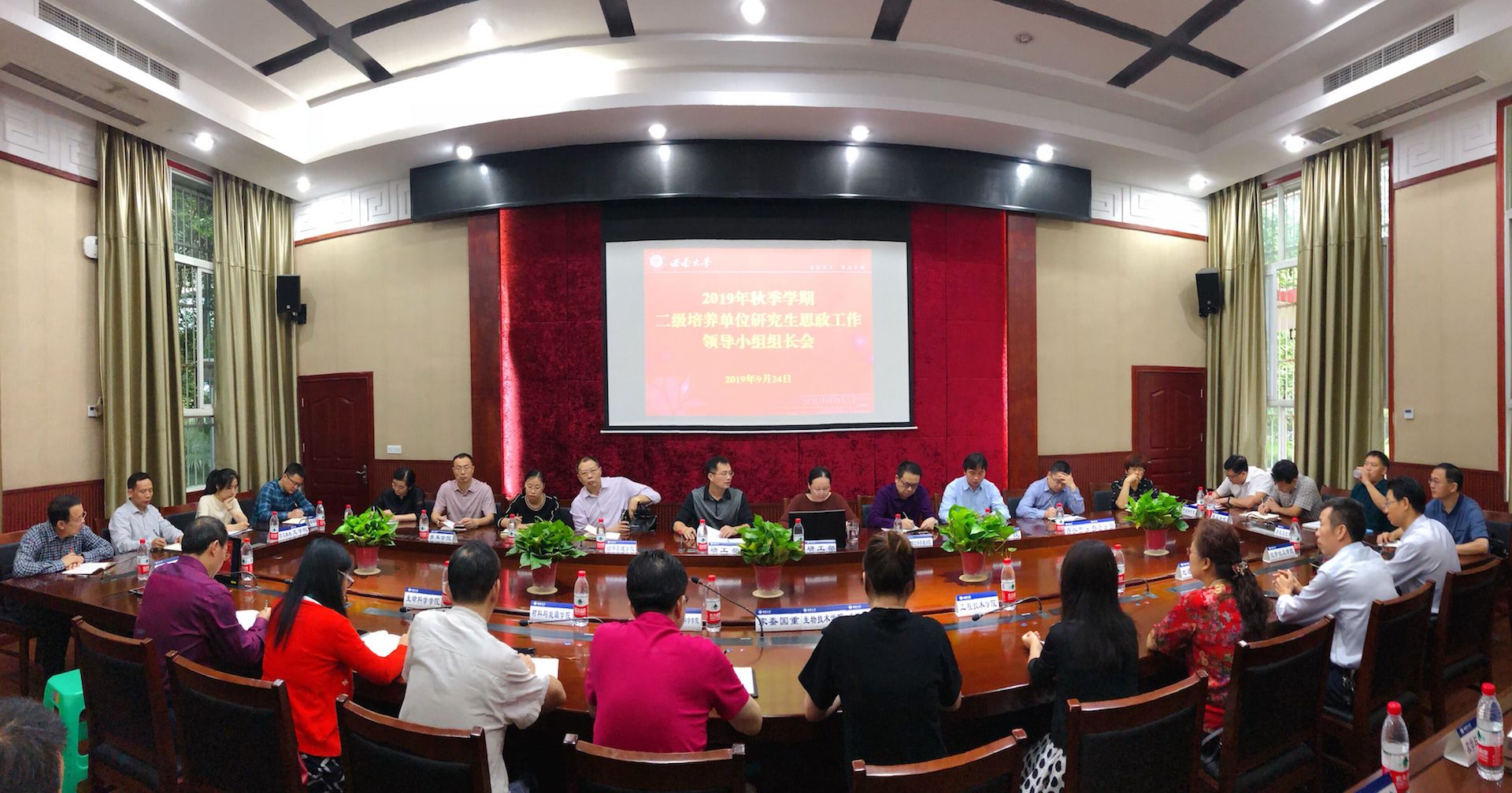 9月24日,2019年秋季学期二级培养单位研究生思政工作领导小组组长会在八一礼堂召开。党委研工部相关负责同志、35个二级培养单位研究生思政工作领导小组组长参会。会议由党委研工部部长尹晓东主持。