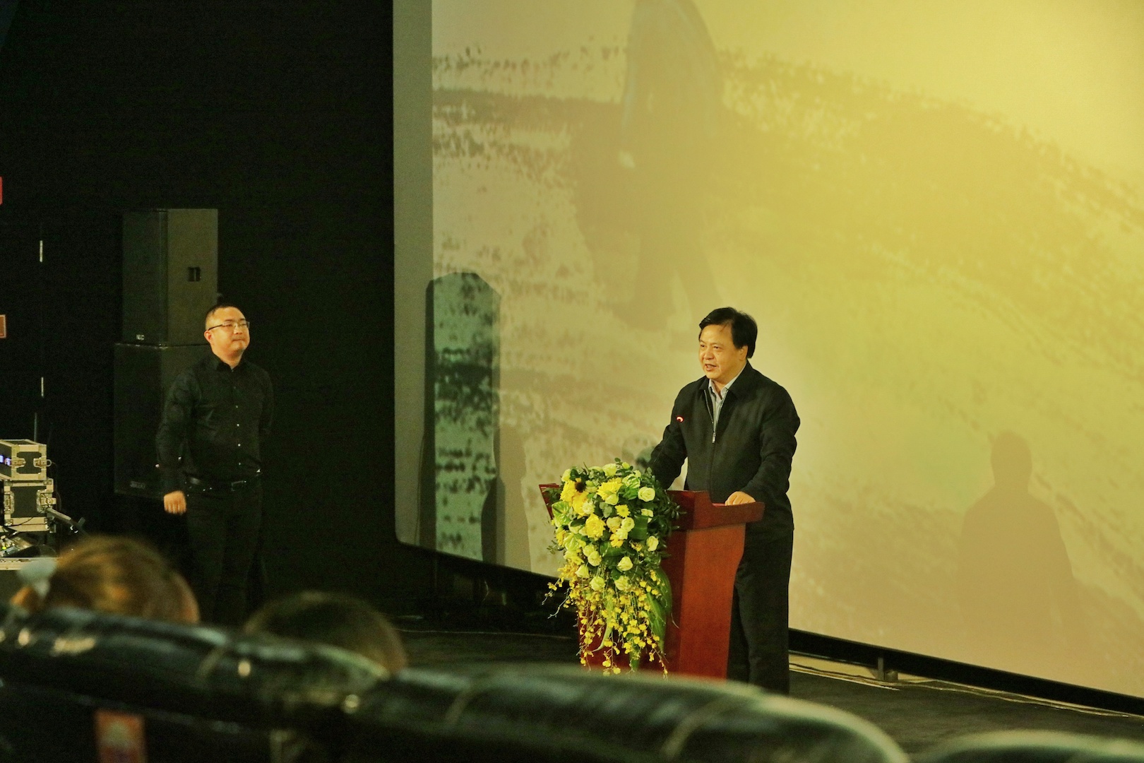 张洪斌副部长在致辞中提出,七年前组建重庆电影集团是为重庆电影的发展点燃梦想,今天在《白云·苍狗》的首映式上,就看到了重庆电影正在逐梦启航。金年会jinnianhuicom的一批青年电影人正在为重庆电影事业、重庆文艺事业的发展,贡献自己的青春热血和智慧。张洪斌副部长强调,对一部电影高度的肯定,不是看投入,而是看情怀;衡量一部电影的热度,则是展现了新时代人们对艺术的理解和执着。类似《白云·苍狗》这样投资不高,但品质很高的电影将不断涌现,未来电影的参天大树一定会在青年一代电影人手中实现。同时,张洪斌副部长宣布影片《白云·苍狗》重庆首映正式开始,预祝影片斩获更多大奖,收获广泛赞誉,叫好又叫座。