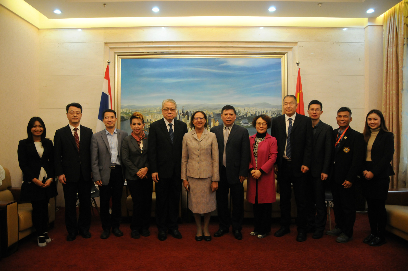11月4日,泰国教育部次长杜丽亚女士和泰国国家教育行政管理学院院长萨蔡童先生来校访问,校长张卫国会见客人。
