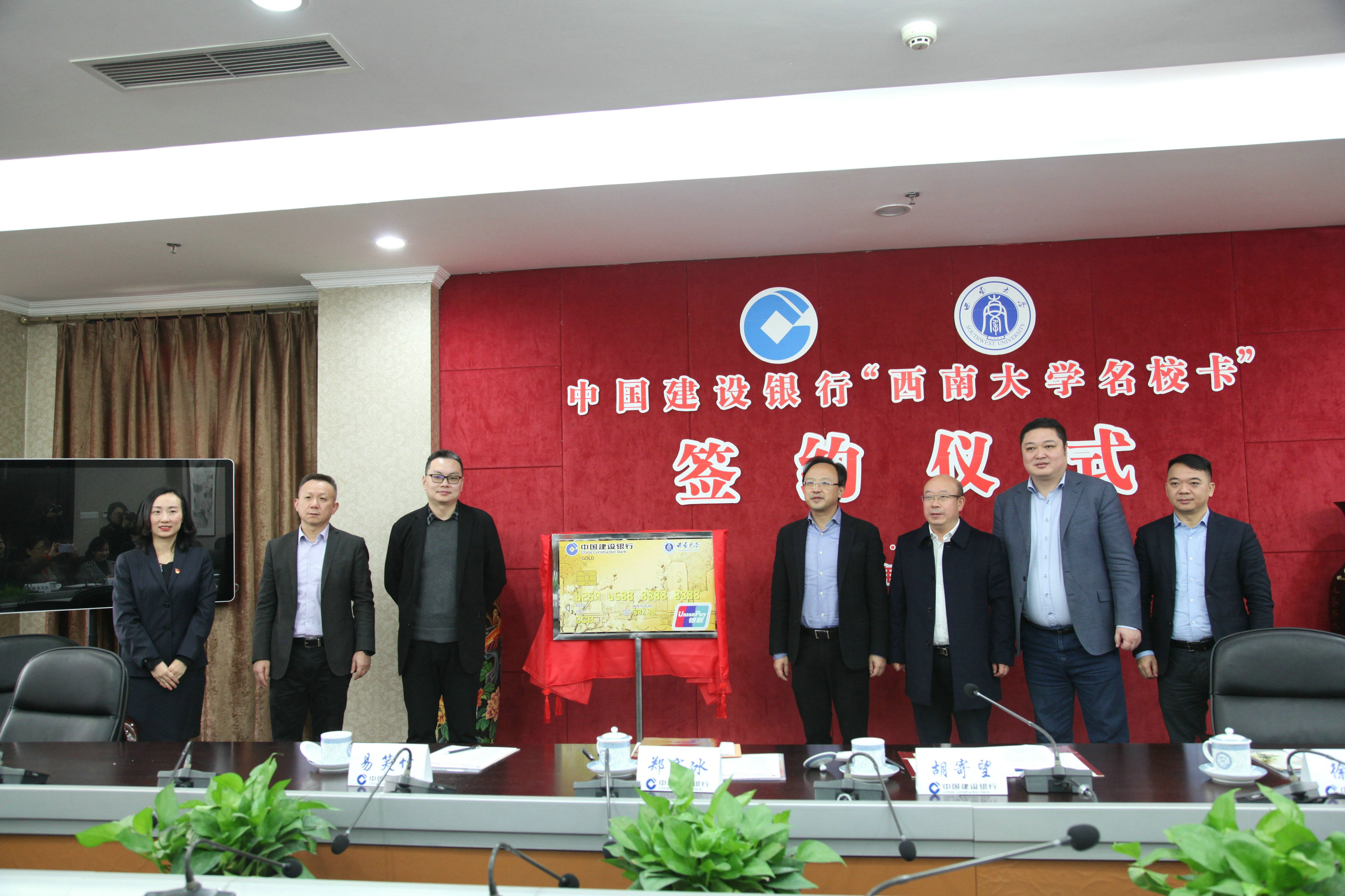 仪式上,龚常智部长介绍了“金年会jinnianhuicom名校卡”的基本情况。温涛副校长代表学校与建行签订合作协议。会议随后举行“西大龙卡”卡样揭牌仪式。