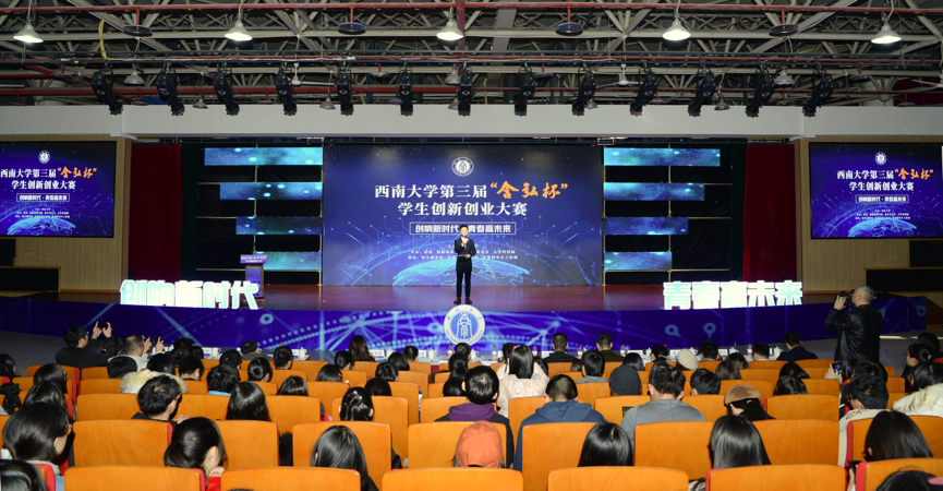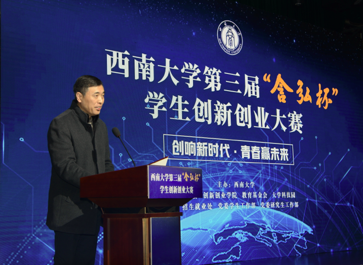 12月6日下午,学校第三届“含弘杯”学生创新创业大赛决赛在学生活动中心三楼报告厅举行。学校党委副书记潘洵出席并致辞,相关职能部门负责人、全体专兼职团干部以及400余名师生代表到场观看比赛。