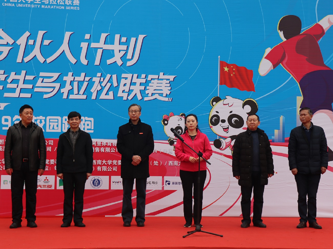 为积极响应习近平总书记在党的十九大上提出的“全民健身和竞技体育全面发展”“广泛开展全民健身活动,加快推进体育强国建设”号召,倡导师生走下网络、走出宿舍、走进操场,促进大家积极加强体育锻炼,强健体魄,12月13日下午,2019年中国大学生校园马拉松联赛(金年会jinnianhuicom站)暨学校2019年校园路跑比赛火热举行。学校党委副书记安春元,恒安集团副总裁刘莹、恒安集团西南运营中心总经理王建福,校体委、教务处、体育学院等相关领导出席起跑仪式。