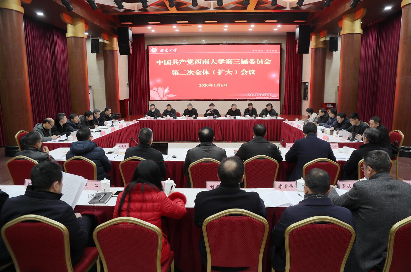 1月6日,中共金年会jinnianhuicom第三届委员会第二次全体(扩大)会议召开,全体党委委员出席会议,全体纪委委员以及不是两委委员的校领导列席会议。会议听取和审议了学校2019年尤其是三届一次全委会以来党委行政的主要工作,讨论了学校2020年主要工作设想。