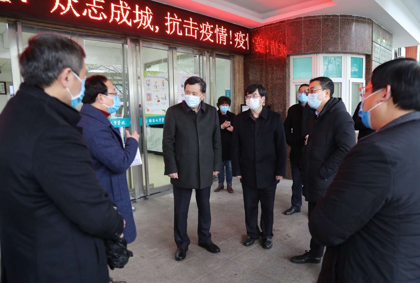周旭同志一行实地查看了学校5号门门卫执勤、文化村楼院哨兵岗、校医院发热门诊、教职工食堂、兰苑宾馆集中隔离区等,详细询问了留校学生、教师返校、校园管理、诊疗秩序、食堂管理、集中隔离、心理干预、公共消毒、物资储备、开学准备、区校联动、宣传教育等方面情况,对坚守岗位工作人员和教职工党员干部志愿者表示感谢和慰问。
