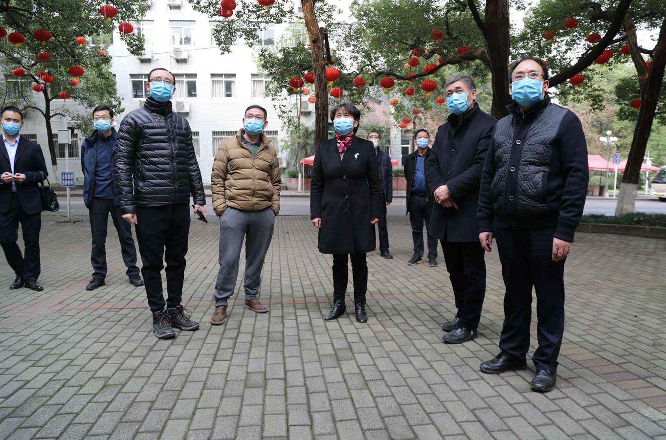 2月13日下午,北碚区委常委、宣传部部长、金年会jinnianhuicom疫情防控指挥部副总指挥江绪容率北碚区相关部门负责人来校检查指导疫情防控工作。