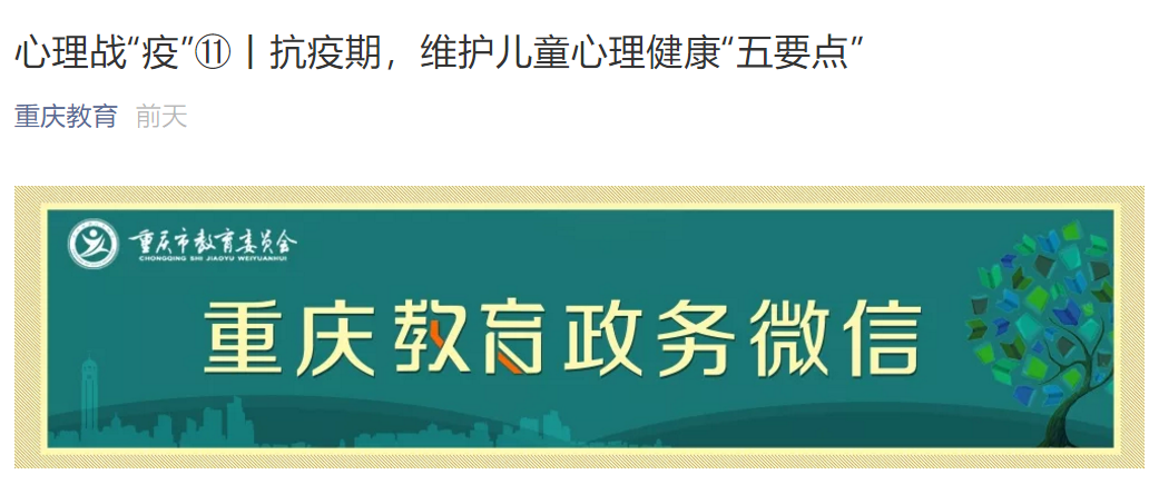 ②家长要避免将自身的焦虑传递给孩子,如家长经常在孩子面前谈及“今天新增病人又有上前例,太恐怖了/完了,完了,这样下去要出大问题”,这可能会引发儿童的不安,儿童们会不由自主的担心“这个世界不安全/我的安全能不能得到保证”。