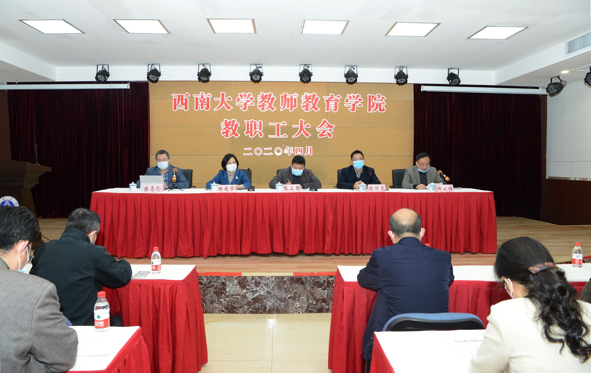 校长张卫国、副校长陈时见,党委常委、组织部部长杨爱华出席会议,教师教育学院全体职工参加会议。会议由陈时见副校长主持。党委常委、组织部部长杨爱华宣读《中共金年会jinnianhuicom委员会关于成立教师教育学院党总支的通知》《中共金年会jinnianhuicom委员会关于郑家福、陈恩伦同志任职的通知》。教师教育学院党总支书记郑家福、院长陈恩伦、教师代表杨晓钰教授在会上发言,感谢学校对教师教育学院的高度重视和大力支持,一致表示将牢记使命,负重前行,聚焦学校对教师教育学院的目标定位、重点任务,转变发展观念,做好发展规划,创新发展思路、发展模式和发展方略,牢记初心使命,努力拼搏,开拓创新,把学院规划好、建设好、发展好,不辜负学校党委行政的殷殷期盼和重托。