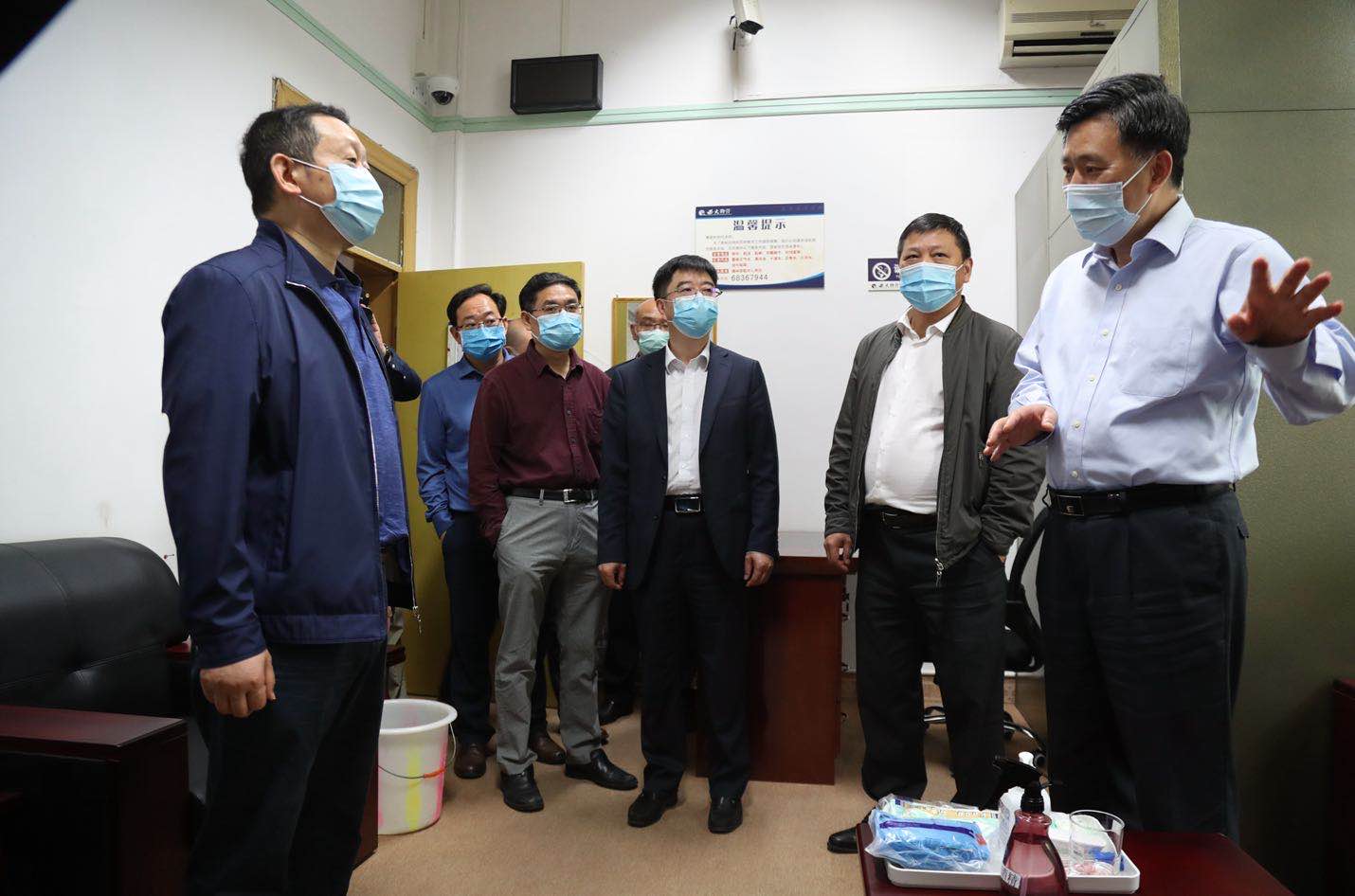 李旭锋、张卫国对周旭一行来校指导工作表示感谢。在陪同检查中,详细介绍了学校各项工作预案和准备情况。要求学校各单位要坚持问题导向,查漏补缺,聚焦食堂用餐、宿舍管理、生活保障等重点环节,进一步完善开学复课工作。要做好学生返校前后的全程跟踪、管理和指引,错时错峰安排好学生报到、就餐、学习等各类事宜。要广泛发挥志愿者服务作用,坚持教育为主、监督到位思路,积极引导学生遵守封闭管理要求和卫生习惯。各单位要强化责任担当,做好、做实家校沟通工作,落地、落细校地联动合力,进一步抓实复学前的各项准备工作,为全校师生健康安全保驾护航。