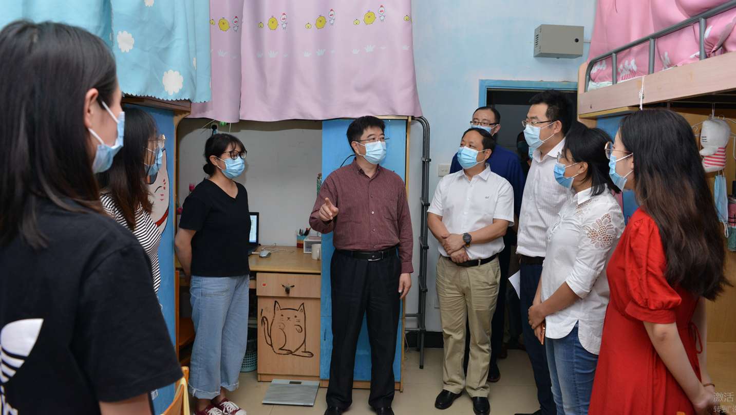 近日,党委书记李旭锋、校长张卫国、副校长周光明深入楠园、竹园、橘园、杏园等学生园区寝室看望慰问返校学生,并对开学复课后的学生宿舍管理、防疫志愿服务等工作进行现场指导。学校党政办、研工部、学工部、保卫处、团委、后勤集团和有关学院负责人参加慰问。