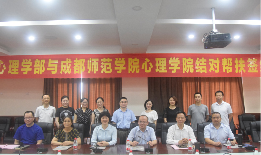 为贯彻落实全国教育大会和教育部“六卓越一拔尖”计划2.0大会精神,积极响应《中国心理学会关于助推全国心理学科发展的倡议》,充分发挥全国心理学科建设水平较高教学和科研单位优势,共同提高学科建设水平,提升心理学人才培养质量,经友好协商,心理学部与成都师范学院心理学院签订结对帮扶协议。