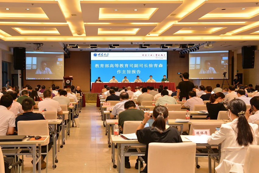 6月28日上午,由重庆市教育委员会主办、学校承办的重庆市高校推进课程思政建设研讨会在学校国际报告厅举行。受疫情影响,教育部高等教育司副司长徐青森在北京通过视频连线方式出席会议。重庆市委教育工委专职副书记覃正杰,重庆大学副校长廖瑞金等全市高校有关领导,学校党委书记李旭锋、副校长王进军出席会议。市教委高教处副处长吴岚主持会议。