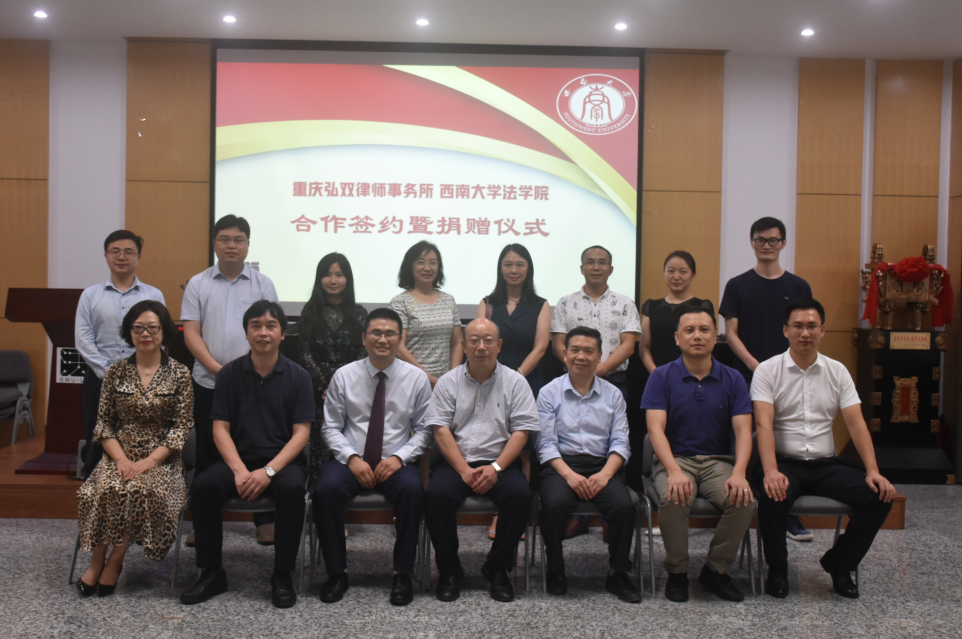 7月1日下午,重庆弘双律师事务所与金年会jinnianhuicom合作签约暨捐赠仪式在法学院举行。重庆弘双律师事务所执行主任、合伙人牟均发一行出席签约仪式,学校对外联络办公室、法学院相关负责人参加签约仪式。