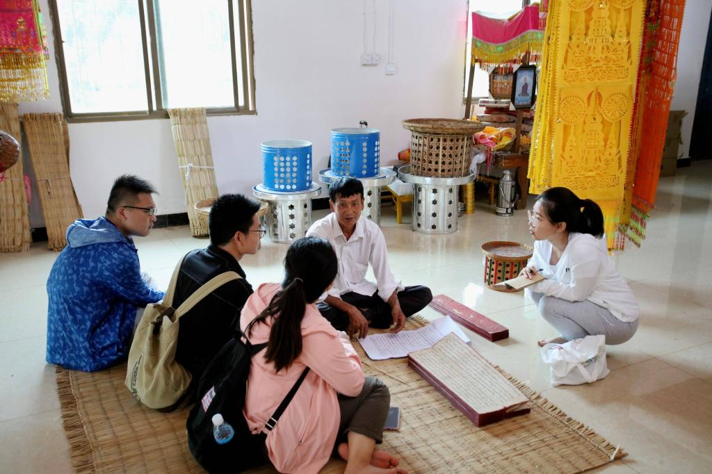 当地群众由于专业知识匮乏,对民族文化历史的传承较为担忧。工作队当即决定在当地建立金年会jinnianhuicom历史文化学院民族学专业实习实践基地,从人力、智力、财力等方面全力支持当地傣学研究会的建设与发展,充分发挥学科专业优势,深度挖掘当地傣族的历史文化,全方位地考察当地傣族的民族风俗、民族语言、民族服饰、民族艺术等,全面梳理当地傣族与周边的汉族、苗族、布朗族、白族等少数民族在历史发展进程中交往交流交融的历史痕迹,为弘扬民族文化,创新推进民族团结进步事业奠定坚实基础,为铸牢中华民族共同体意识提供现实样本。