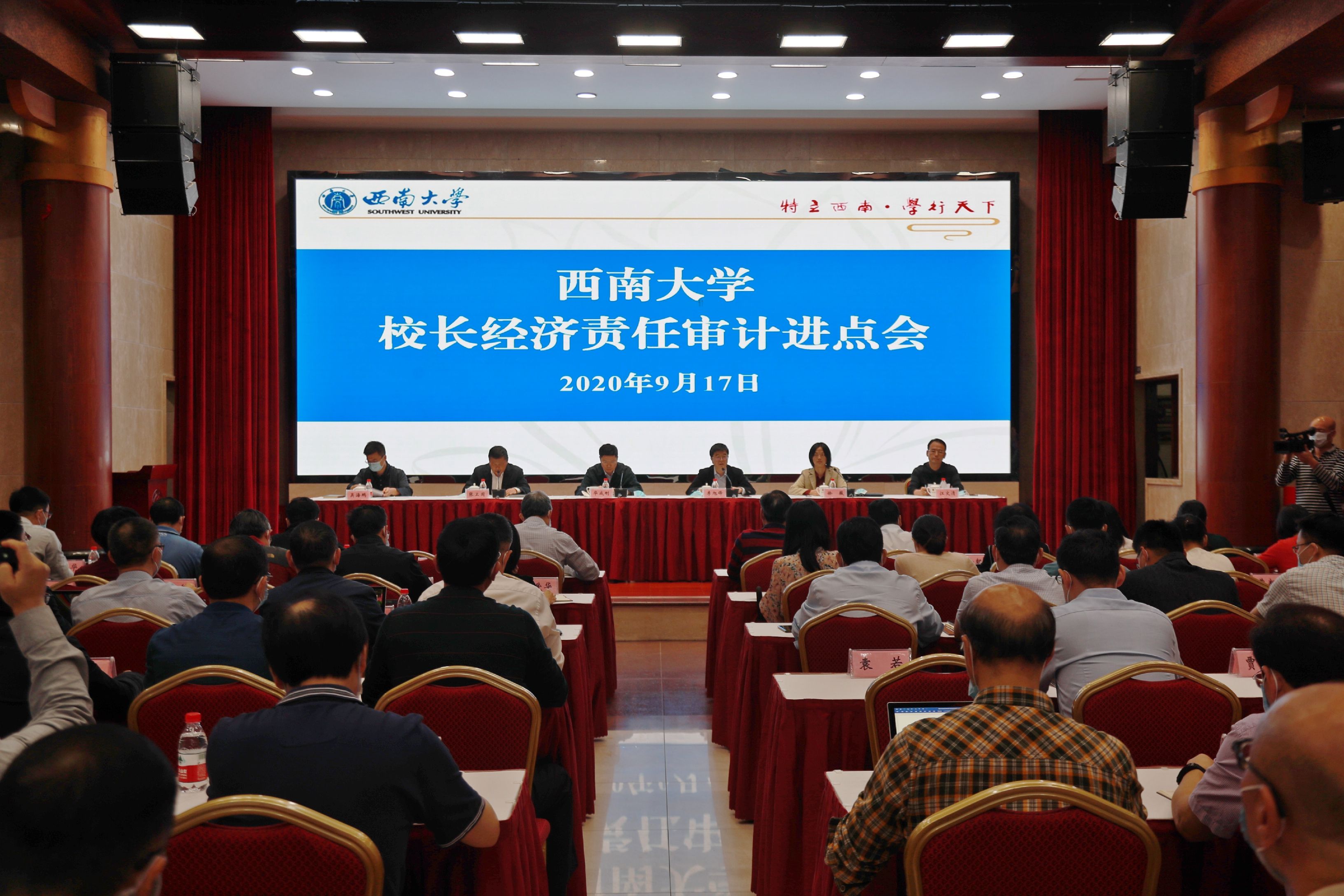 审计组组长、教育部财务司副司长华成刚,教育部财务司审计处处长徐薇,审计组副组长、教育部财务司审计处副处长吴海鹏,项目主审、四川大学审计处处长江文清,四川大学、山东大学审计处和苏亚金诚会计师事务所的各位专家,学校领导班子成员、党委常委,机关部门直附属单位企业单位主要负责人,各学院部经济责任主要负责人出席会议。党委书记李旭锋主持会议。