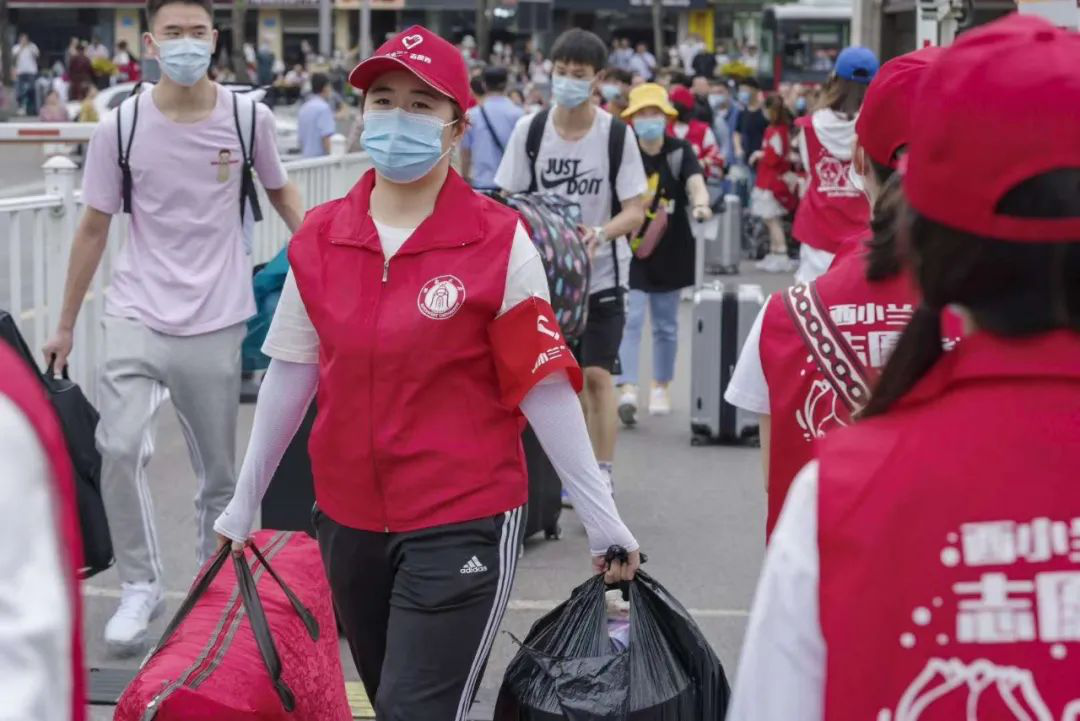 常态化疫情防控背景下,新生家长不能进校,面对新生行李多、运送难等问题,2000余名志愿者在校园里来回帮助新生搬运行李、实时指路、答疑解惑。在学生生活园区,园区特设党支部和园区学生自我管理委员会的学生党员、学生骨干在各园区设立迎新服务点,为新生们搬运行李、寻找宿舍、介绍园区环境,同时还为新生答疑解惑,引导新生起航新的梦想之旅。