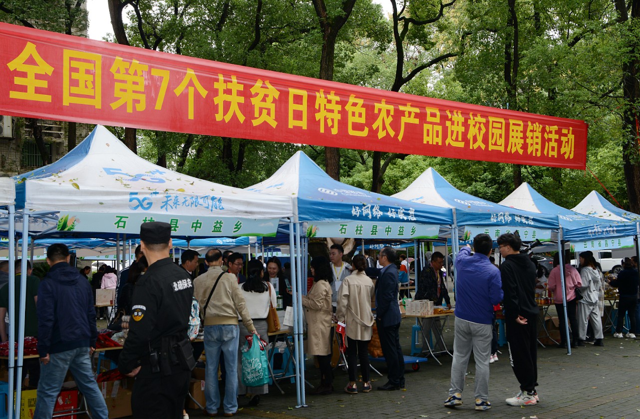 在全国第7个扶贫日到来之际,10月16日-17日,学校举行云南省昌宁县、重庆市石柱县中益乡、丰都县三建乡、巫溪县红池坝镇等对口帮扶贫困县特色农产品进校园展销活动,并携手中国农业银行启动“扶贫商城金年会jinnianhuicom专栏”,全校师生员工积极参与消费扶贫,助力脱贫攻坚。