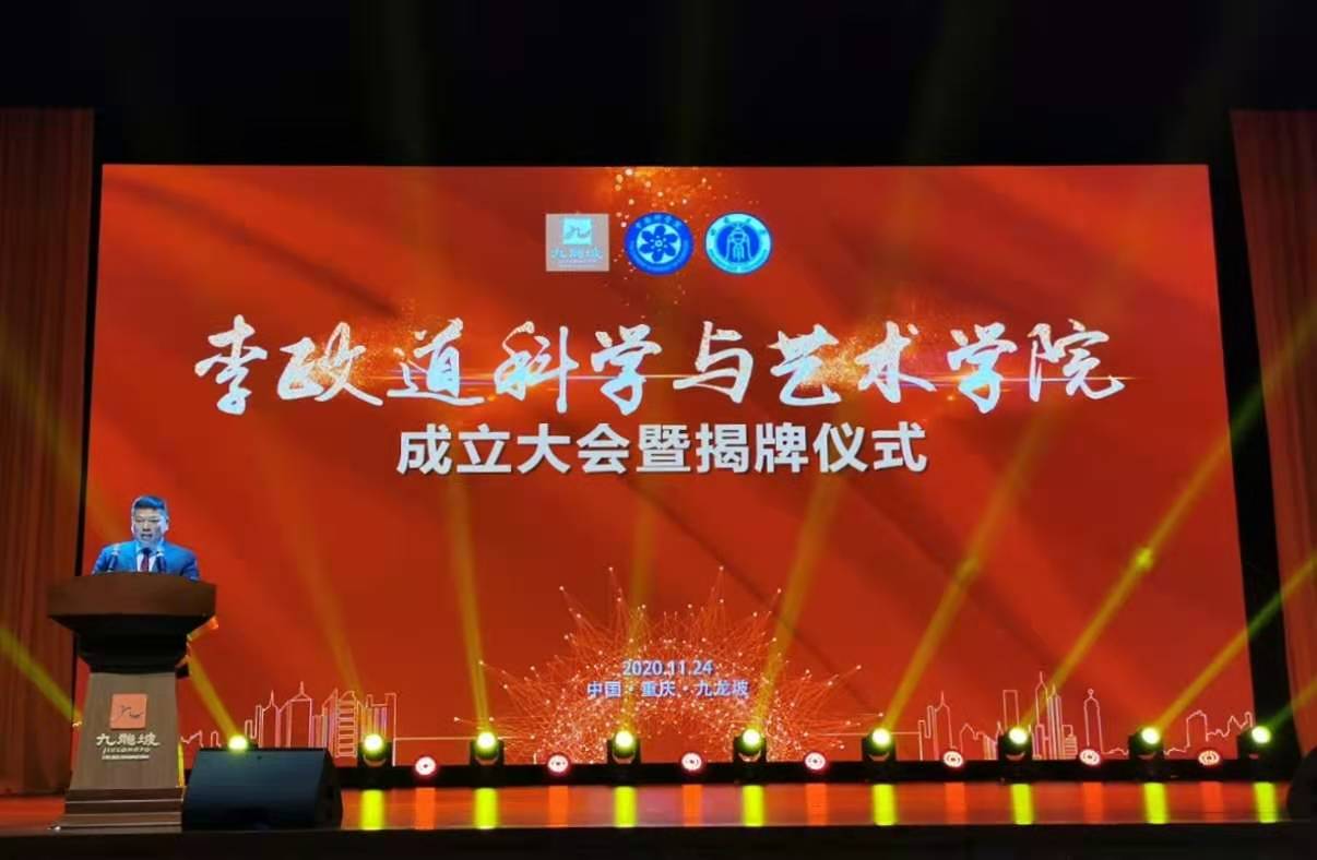 11月24日上午,李政道科学与艺术学院成立大会暨揭牌仪式在重庆九龙坡区九龙会堂举行。中国科学院院士、中国探月工程首席科学家欧阳自远,中国科学院大学党委常务副书记、副校长董军社,重庆市九龙坡区委书记周勇、区长刘小强,金年会jinnianhuicom校长张卫国、副校长赵国华,以及来自全国相关高等院校、科研院所的专家和近百名师生参会。会议由中国科学院大学李政道科学与艺术中心副主任杨晓鲁主持。