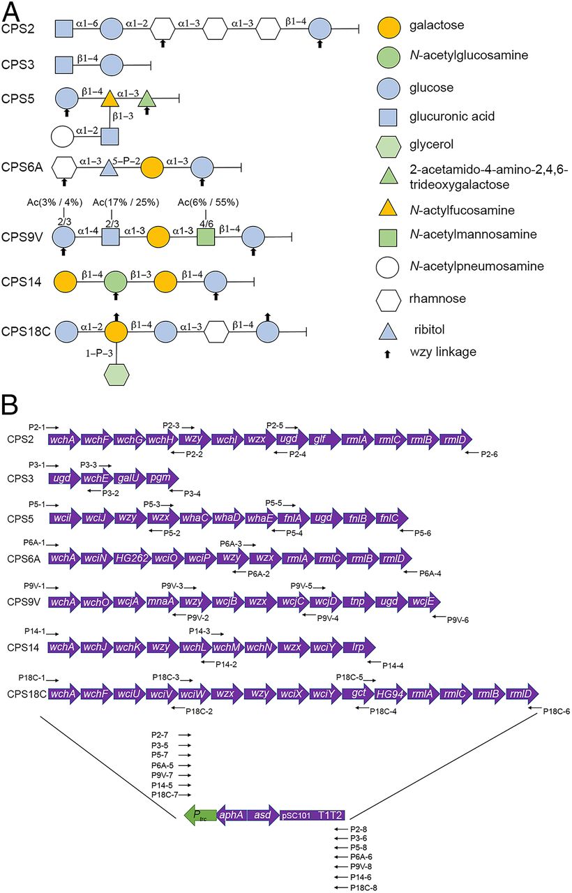近日,国际顶级综合期刊美国科学院院刊(PNAS)在线发表动物医学院孔庆科博士课题组在多糖疫苗研究中的重要研究成果“Synthesis and delivery of Streptococcus pneumoniae capsular polysaccharides by recombinant attenuated Salmonella vaccines”(减毒沙门氏菌疫苗合成及递送来源于肺炎链球菌的多糖抗原)。该研究首次通过合成生物学,细菌遗传学及免疫学等方法,将革兰氏阳性细菌的表面多糖抗原成功表达合成于革兰氏阴性细菌减毒沙门氏菌的表面,并连接于沙门氏菌内毒素的类脂A上,利用遗传改造及调控的减毒沙门菌疫苗载体递送肺炎链球菌的多糖抗原开发新型疫苗。该方法突破了目前固有的阳性细菌多糖疫苗的构建方式,为将来快速、高效的构建多糖疫苗奠定了基础。