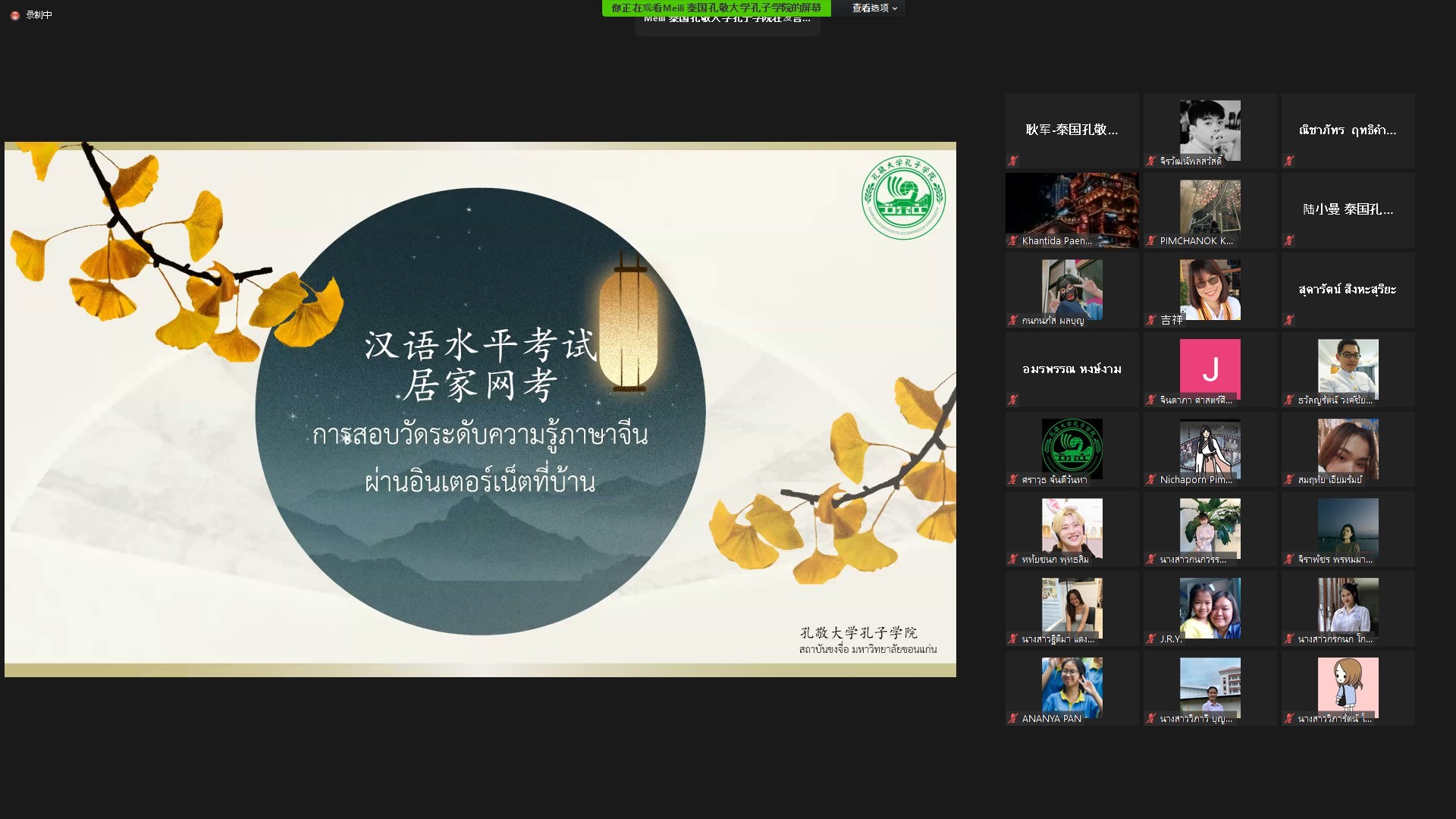 据悉,孔敬大学孔院自成立以来一直秉持立足泰东北,辐射周边的理念,历来重视奖学金推荐和汉语考试工作。迄今为止,已有数百名泰国学生通过孔敬大学孔院的推荐,成功申请到各类赴华留学奖学金。同时,孔敬大学孔院作为泰国最大的汉语考试考点之一,为近6万名考生提供了优质的考试服务,曾两度荣获“汉语考试优秀考点”称号。本次的线上活动,为泰东北汉语学习者拓宽申请奖学金和了解中国优秀高校的信息渠道,进一步满足泰东北地区汉语学习者日益高涨的赴华留学需求,为热爱汉语、成绩优异的泰国学生提供了赴中国大学深造的机会。