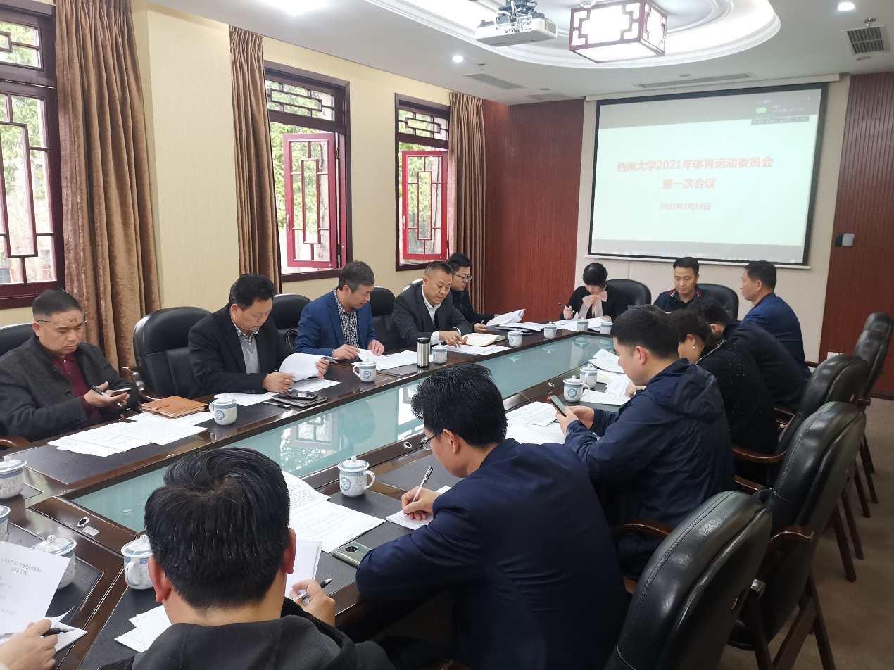 为全面认真贯彻落实《关于全面加强和改进新时代学校体育工作的意见》和重庆市具体工作要求,3月16日,学校召开2021年体育运动委员会第一次会议专题研究部署,学校党委副书记潘洵出席并主持会议,校体委全体委员及体育学院相关同志参会。