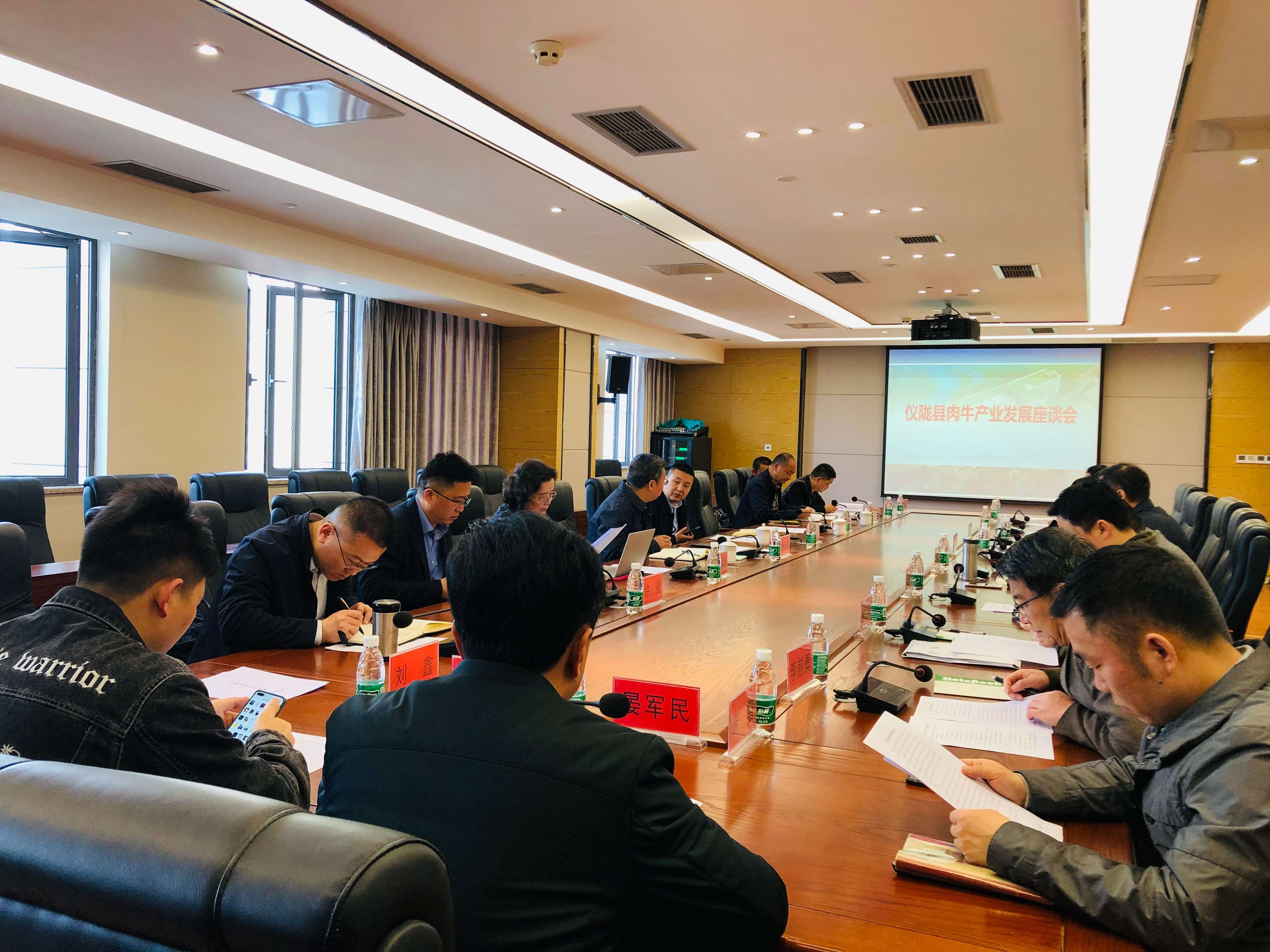 为落实成渝地区双城经济圈建设纲要,做好乡村振兴有效衔接,4月12日,四川仪陇县委书记郭宗海带领县农业农村局、扶贫开发局、经开区管委会、乡村发展协会、养牛联合社等单位主要负责同志一行12人到荣昌校区围绕仪陇县肉牛产业提质增效进行调研。荣昌校区管委会主任、动物科学技术学院教授左福元领衔的肉牛现代化生产技术创新团队全体成员、重庆犇腾畜牧科技有限公司董事长甘晓峰等参加调研会。