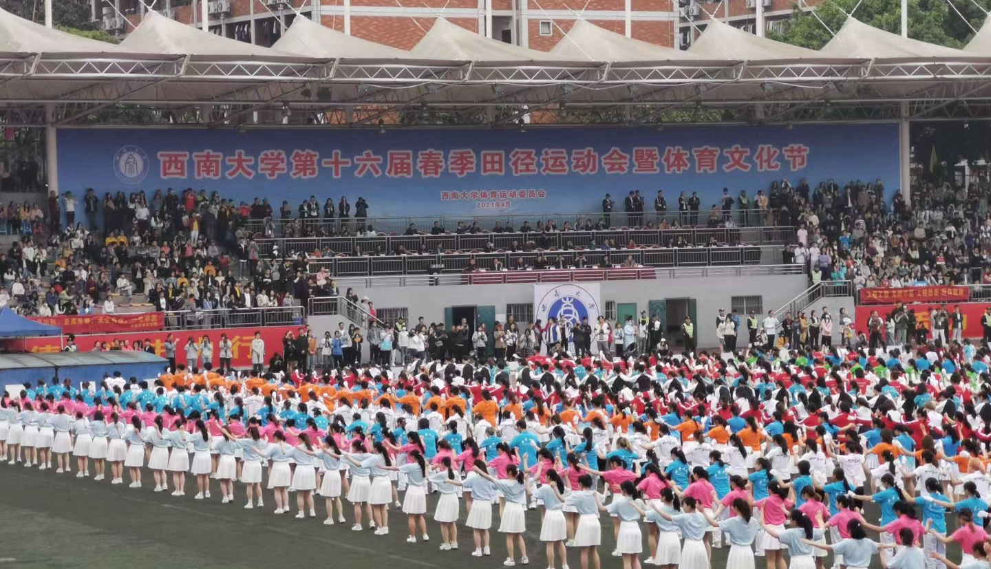 阳光健身跑活动为运动会增添一道靓丽风采。校领导、校体委委员、各学院(部)主要负责人及各学院、单位开幕式方队,共赴健身长跑,跑出了西大人的青春活力与昂扬激情。