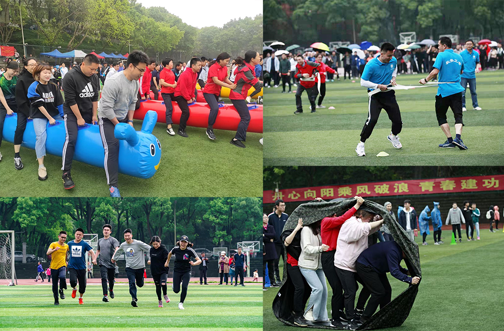 无敌风火轮、毛毛虫接力、滚铁环、贪吃蛇、螃蟹跑等等丰富多彩的集体项目依次展开,教职员工们团结协作、奋勇拼搏,彰显体育文化、尽享运动之美。