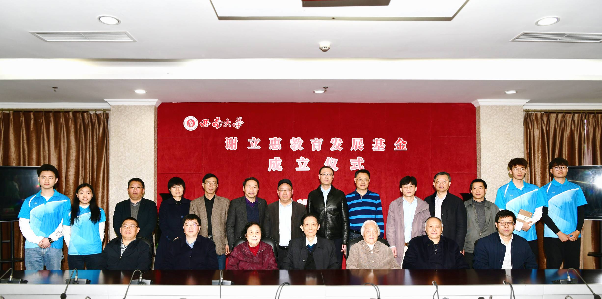 4月16日上午,谢立惠教育发展基金成立仪式在行署楼第五会议室举行。九三学社中央委员会原副主席、重庆市委原主委、重庆市政府原副市长、重庆市政协原副主席谢小军;谢立惠子女代表、电子科技大学本科教学督导组组长谢云荪教授及夫人邓御寇女士;学校电子信息工程学院97岁高龄的退休教授朱传秀老师;九三学社重庆市委会专职副主委黄华以及九三学社北碚区委会、金年会jinnianhuicom委员会相关负责人;学校党委书记、教育基金会理事长李旭锋;副校长、教育基金会副理事长赵国华及相关部门主要负责人出席仪式。对外联络办公室主任、教育基金会秘书长龚常智主持仪式。